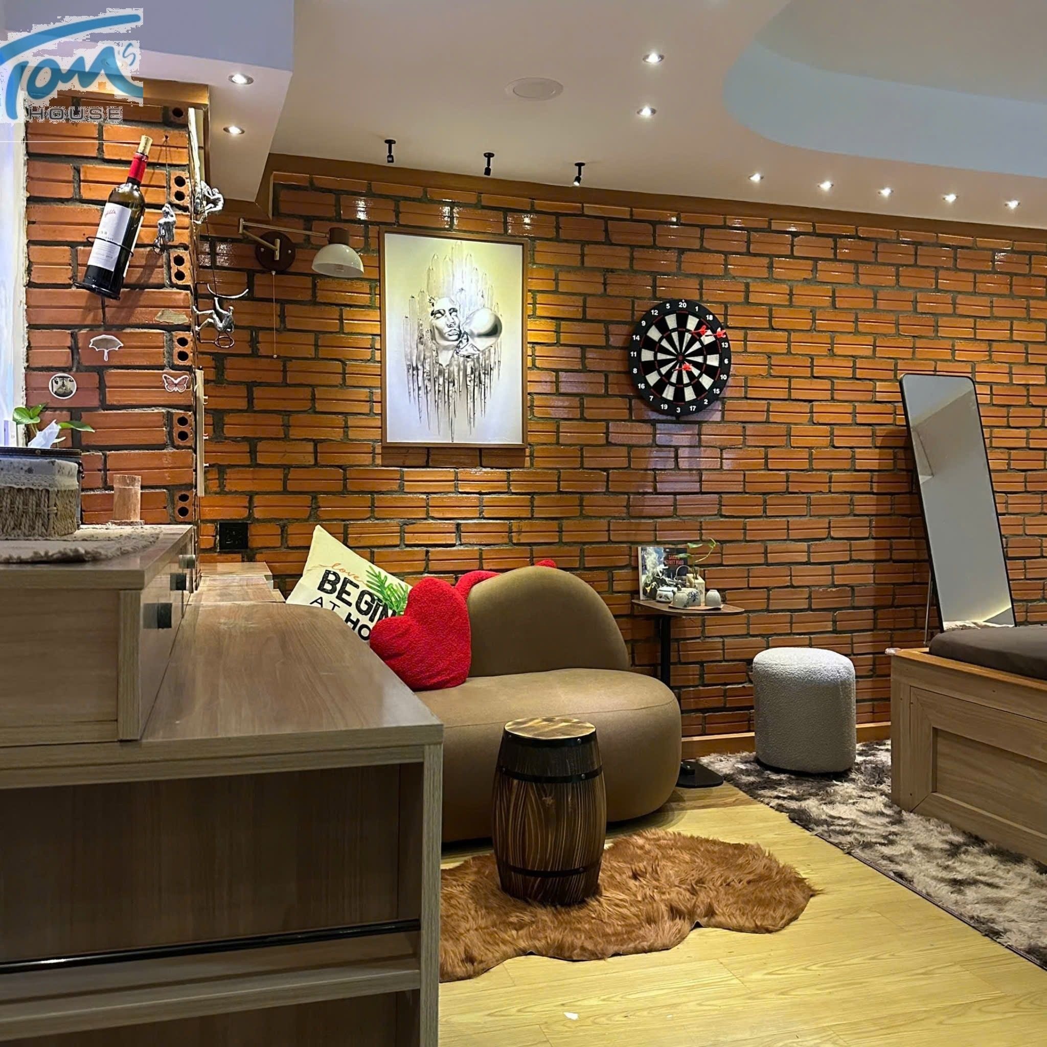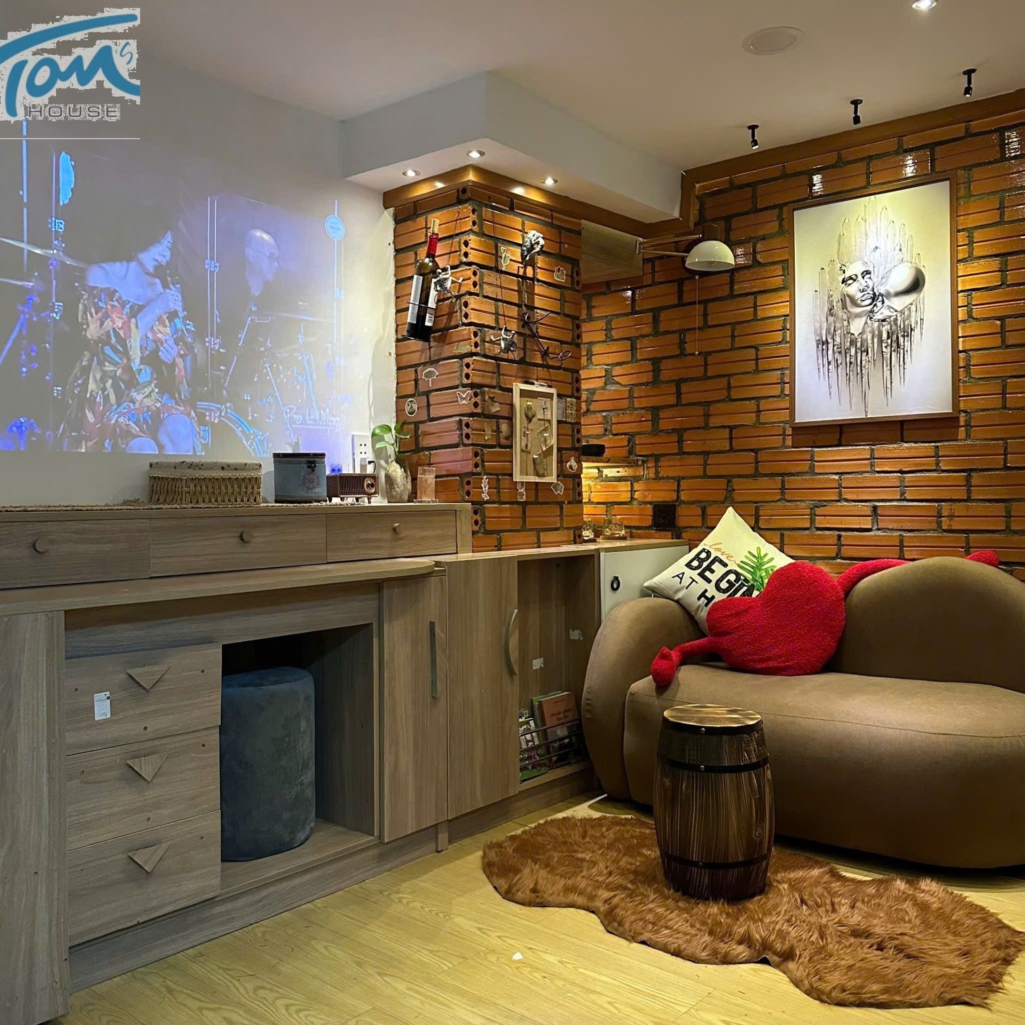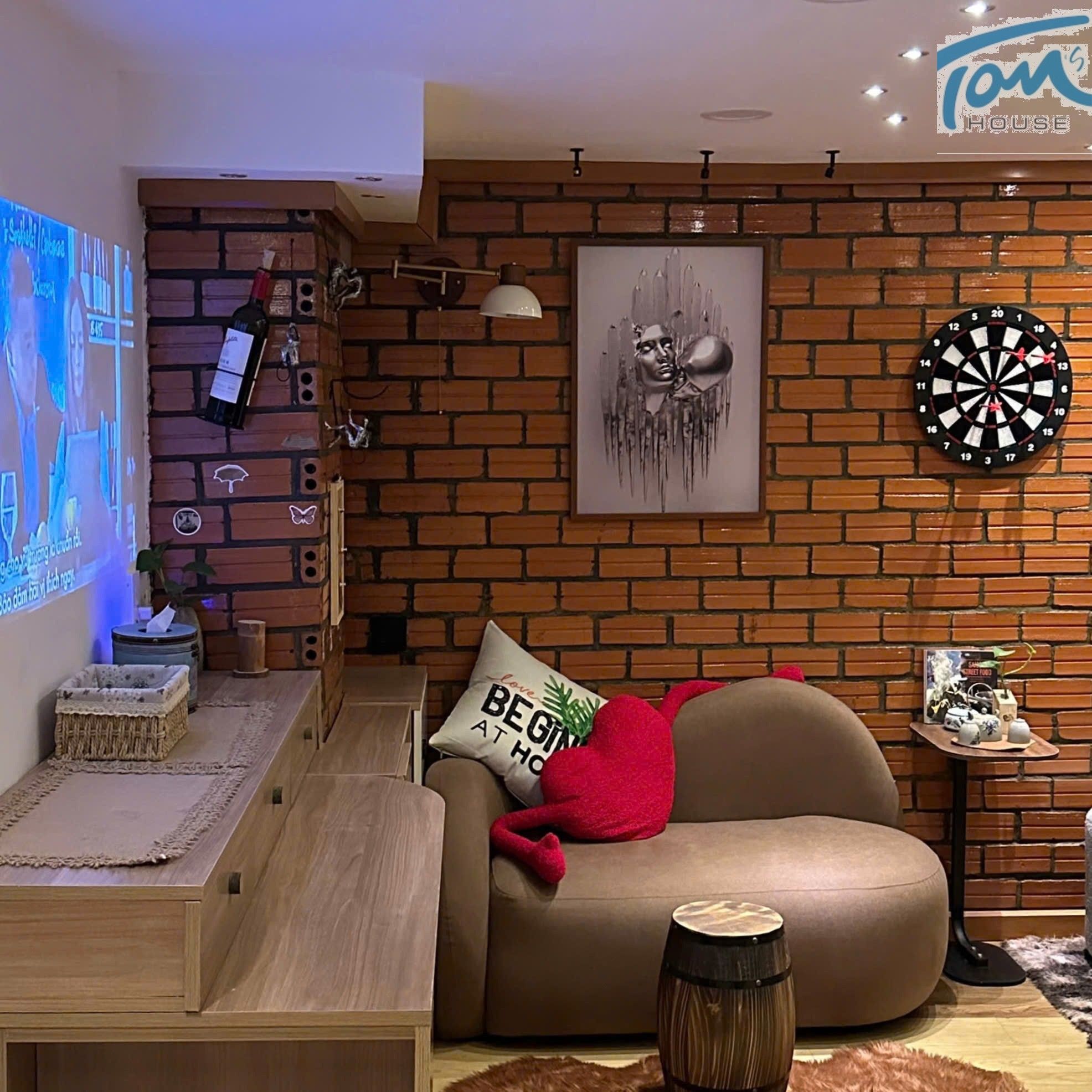 Phía đối diện, chiếc sofa hướng về màn chiếu Netflix, nơi bạn có thể nhâm nhi ly vang đỏ cùng người mình thương. 🛋️🎥🍷